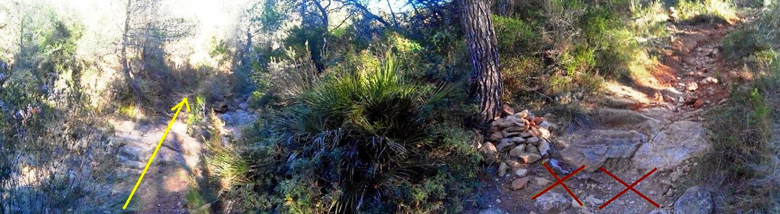 Nos separamos del recorrido original en el punto indicado en la imagen inferior. En vez de subir a la pista a seguir el GR10, toca seguir por el barranco del Marianet, haciendo a la inversa el tramo de la K25 que vuelve del Sierro.